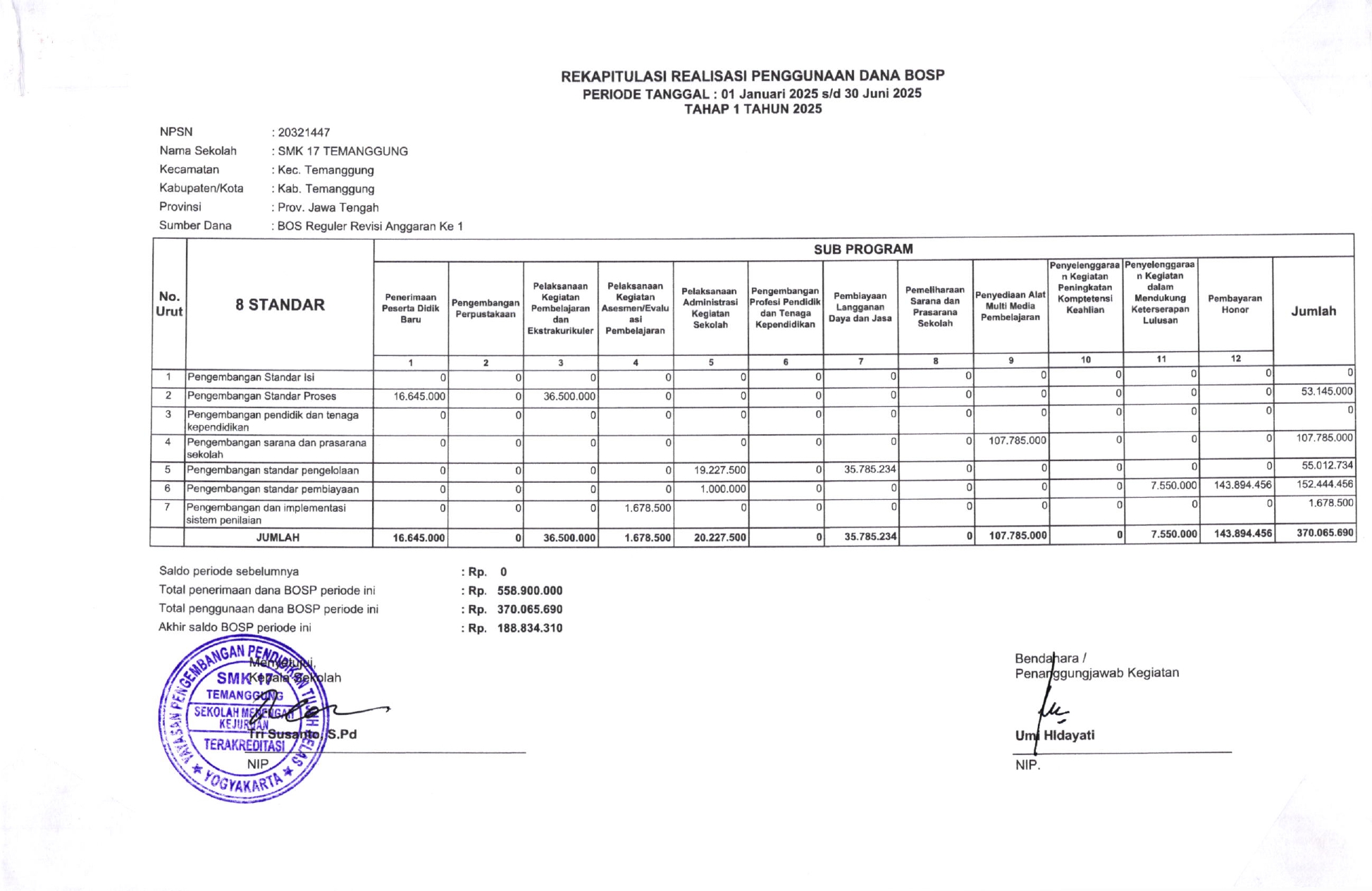 REKAPITULASI REALISASI PENGGUNAAN DANA BOSP 2025 ...